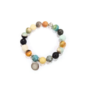 Amazonite Bracelet with Decorative Silver Charms, Semiprecious Stone Jewelry