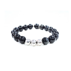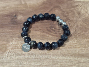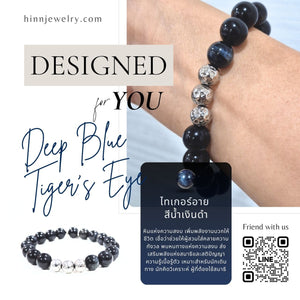 Deep Blue Tiger's eye Bracelet with Decorative Silver Bead Charm, Semiprecious Stone Jewelry