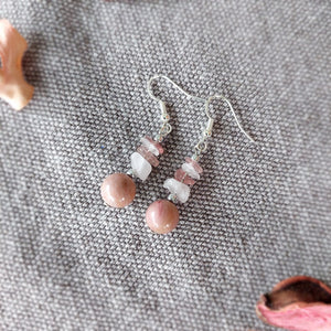 Materials: These gorgeous handmade earrings are made of natural semi-precious stone (Rhodonite and Rose Quartz) with 925 sterling silver ear hooks.