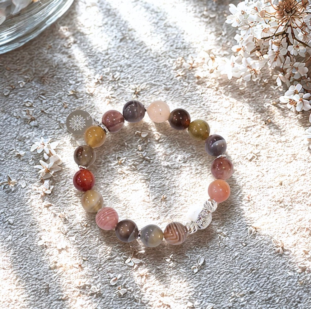 Home NEW ARRIVALS Agate Bracelet with Decorative Silver Charm, Natural Semiprecious Stone Bracelet