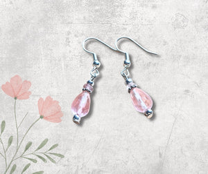Materials: These handmade earrings are made of faced teardrop Pink Quartz natural gemstone bead. We use 925 sterling silver wires for ear hooks.