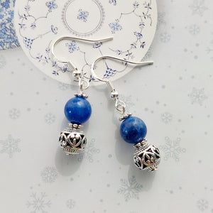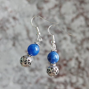 Materials: These gorgeous handmade earrings are made of natural blue Kyanite rounded beads with beautiful silver charm and 925 sterling silver ear hooks.