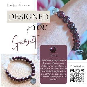 Garnet and Moonstone Bracelet with Decorative S925 Silver Charm, Semiprecious Stone Jewelry