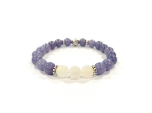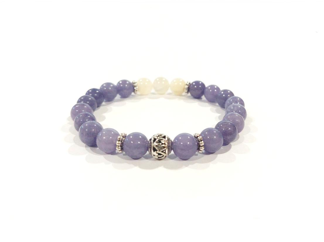 Home ALL PRODUCTS Purple Chalcedony Bracelet with Moonstone and Decorative Silver Charm, Semiprecious Stone Jewelry