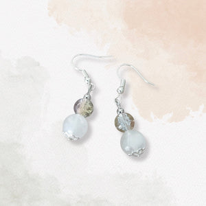 Drop earrings with natural stone beads mixed with beautiful crystal glass beads. Proudly handmade in Thailand.